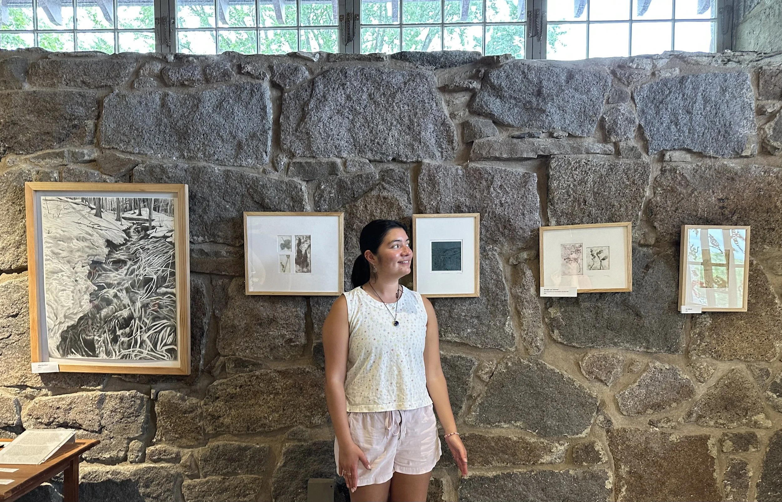 Alani Ramas is an interdisciplinary artist from New England whose practice explores the relationship between humans and the natural world. Born in New Hampshire, she attended the University of Connecticut and received her B.A. in Ecology and Evolutionary Biology. There, she gained an appreciation for Earth’s history, the context of humans, and events that have led us to today. She would combine her love and passion for the environment and drawing through obtaining her Post Baccalaureate certificate at the School of Museum of Fine Arts at Tufts University in 2023. Since attending school in Boston, she has remained working in the city and is a member of the Shepherd & Maudsleigh Print Studio. Being from the Northeast, Alani has always immersed herself in nature; living in New England has allowed her to explore all the greenery surrounding her. Alani also works at New Hampshire’s Department of Environmental Services in their Wetland Bureau, helping protect these sensitive communities. Her passion for preserving the environment has driven her to pursue ecology and convey her findings through art. In her work, she communicates a collective call for action to viewers and explores the power of visual language.